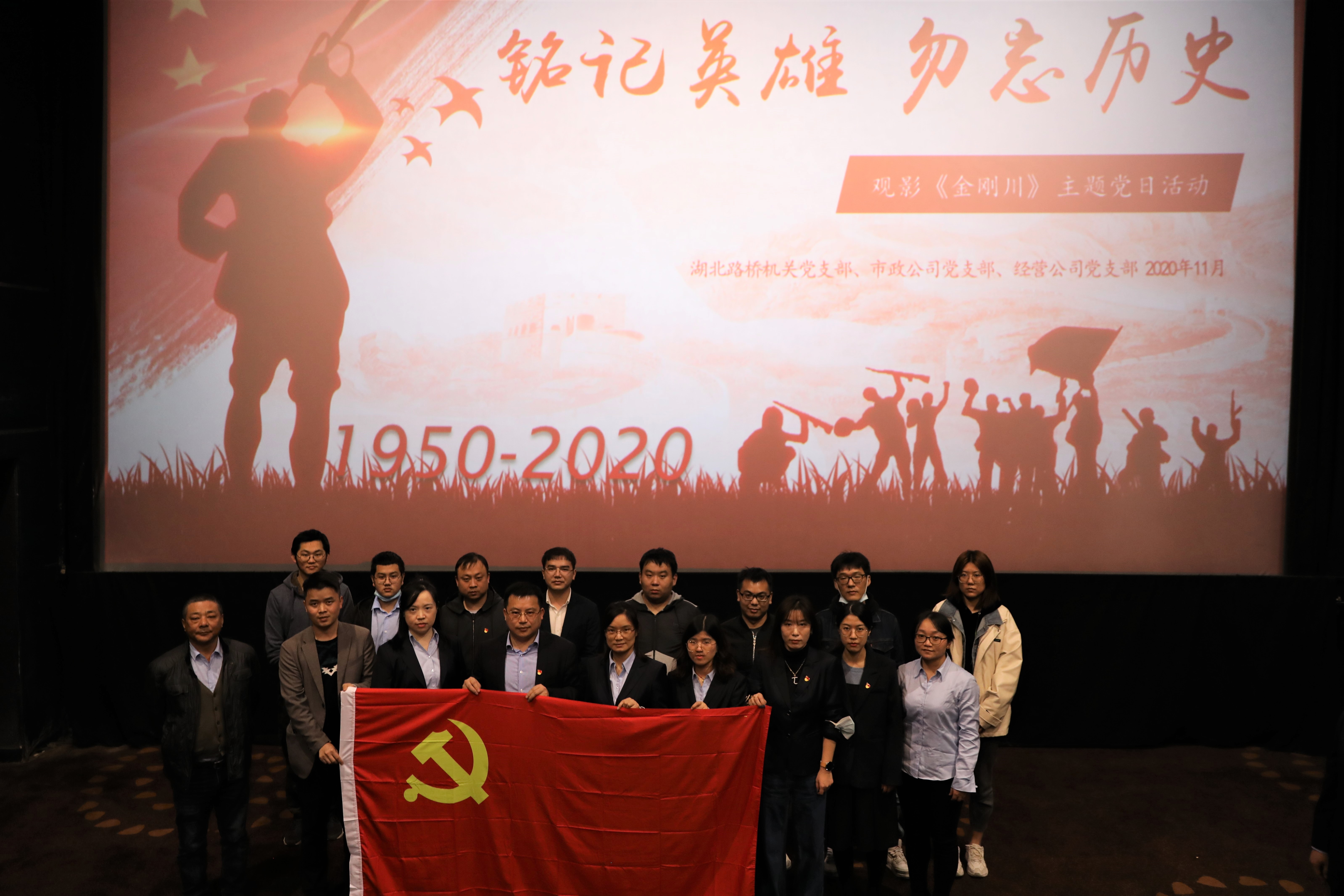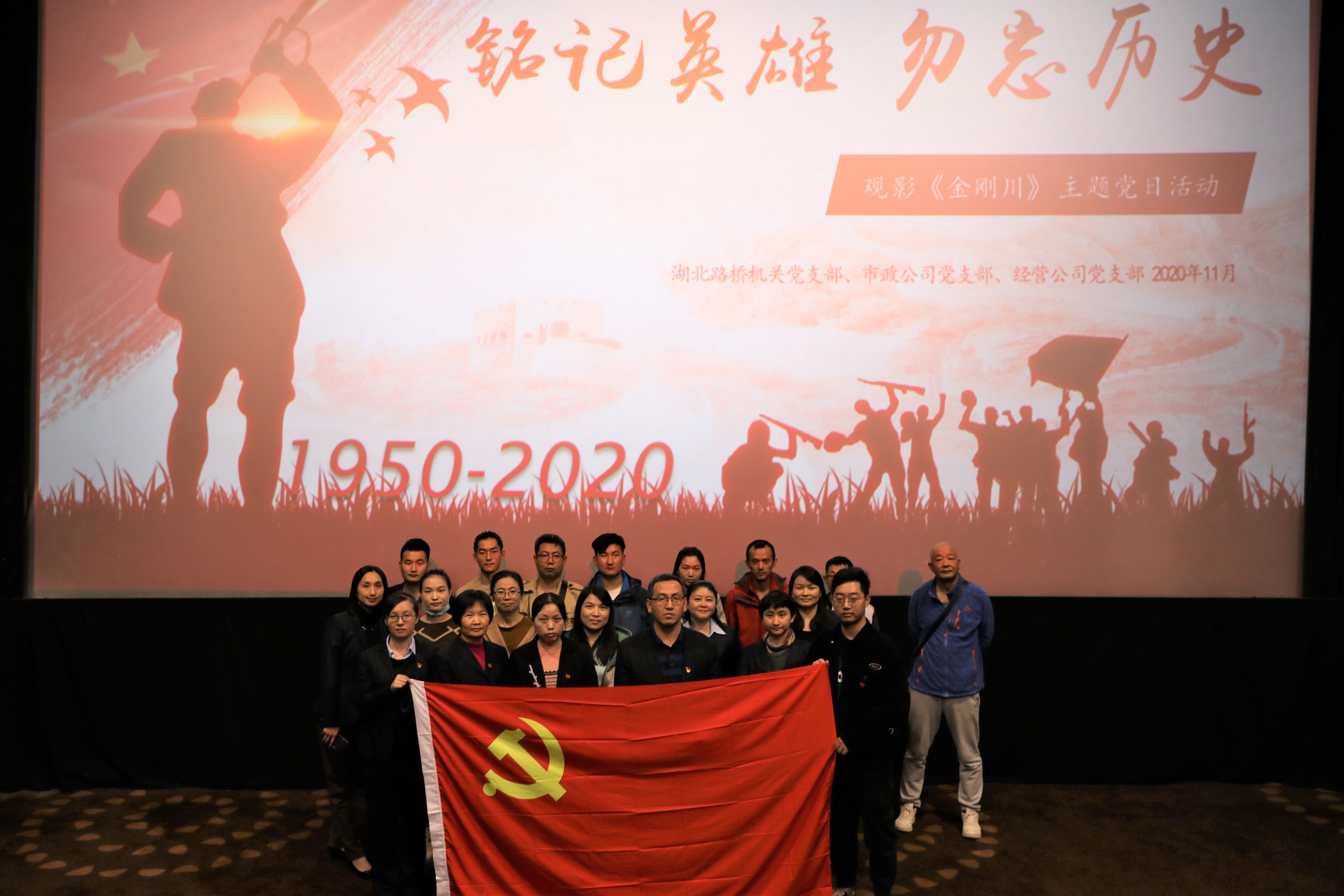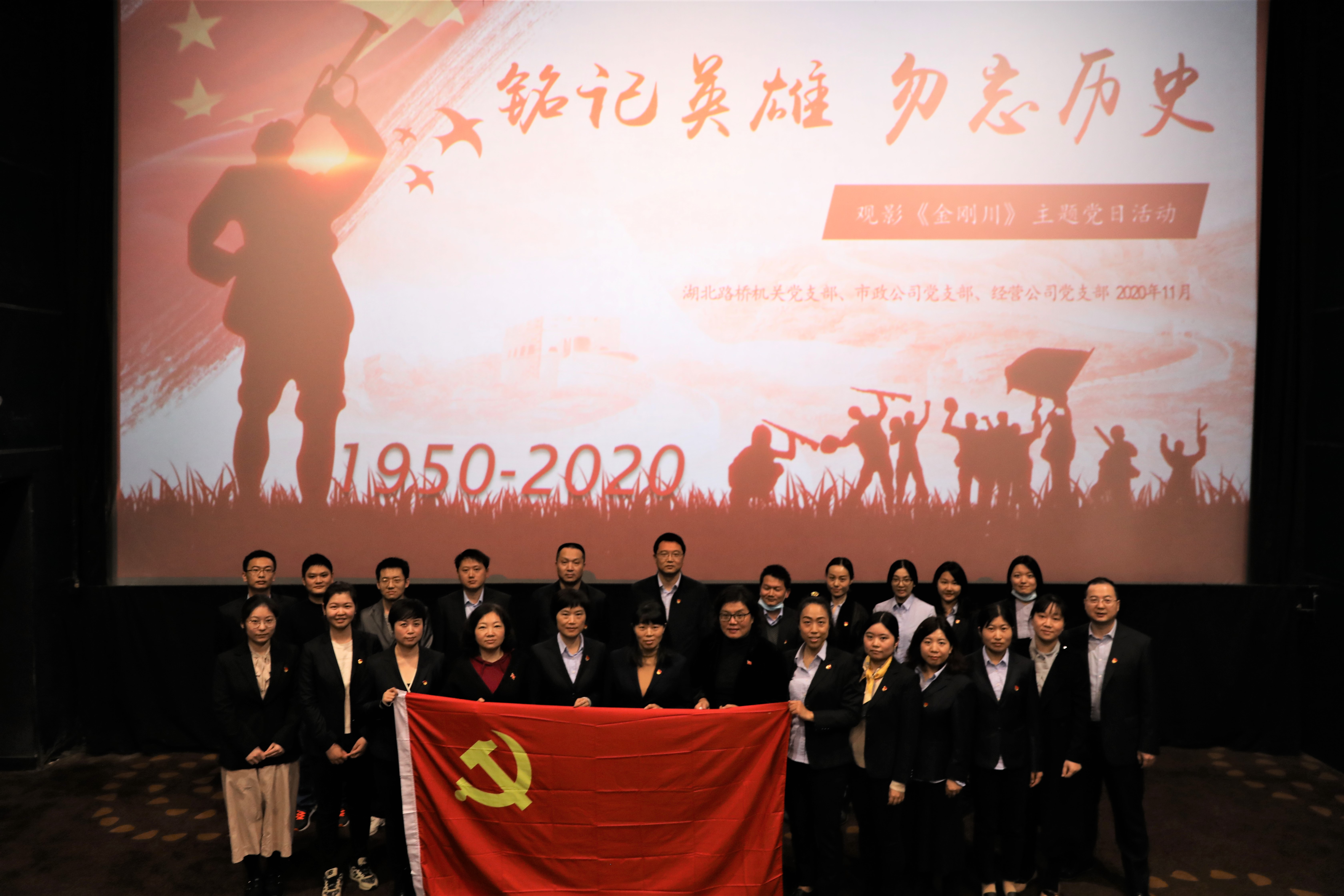 2020年是中國人民志愿軍抗美援朝出國作戰70周年。為銘記歷史,緬懷革命先烈,傳承和弘揚抗美援朝偉大精神,進一步激發全體黨員的愛國熱情,厚植家國情懷,11月19日,機關黨支部聯合市政公司黨支部、經營公司黨支部組織開展了《金剛川》紅色觀影活動。80余名黨員走進影院,追憶抗美援朝,致敬最可愛的人。