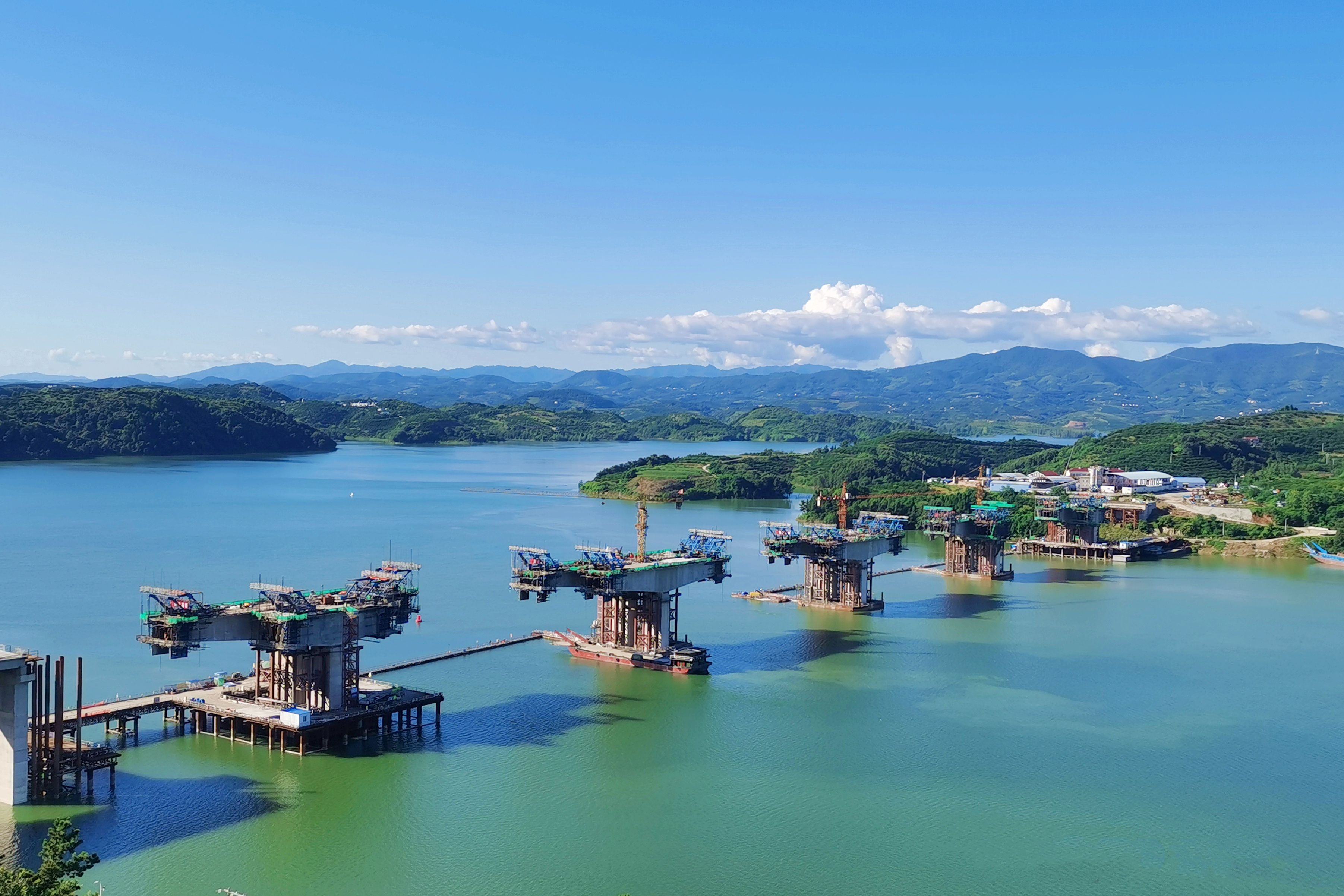 圖:龍山大橋正在進行懸澆箱梁施工