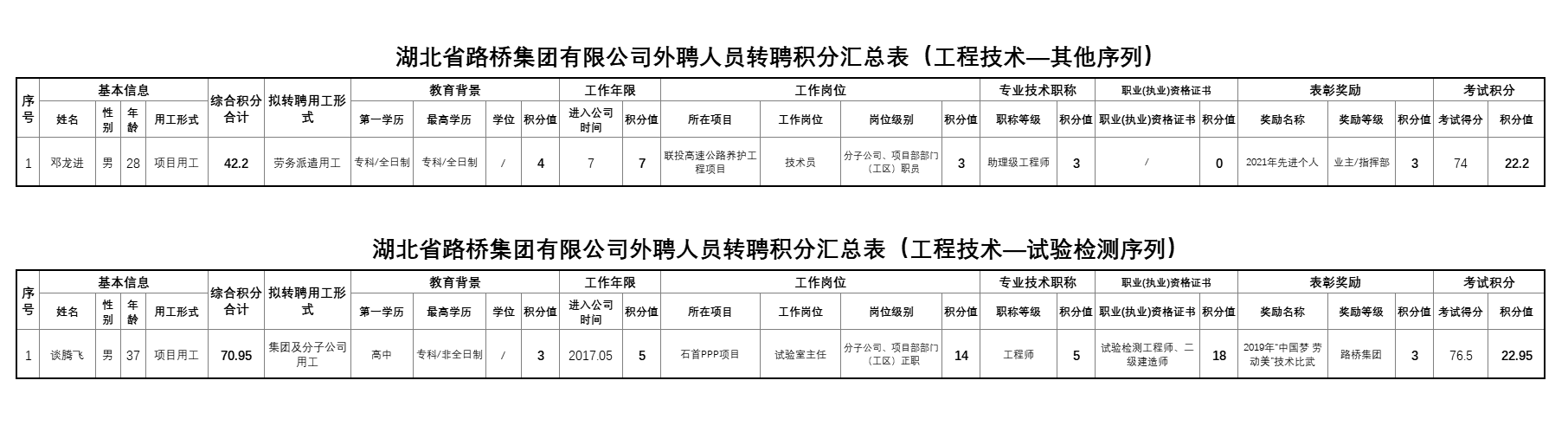 湖北省路橋集團有限公司2022年擬轉聘人員補充公示