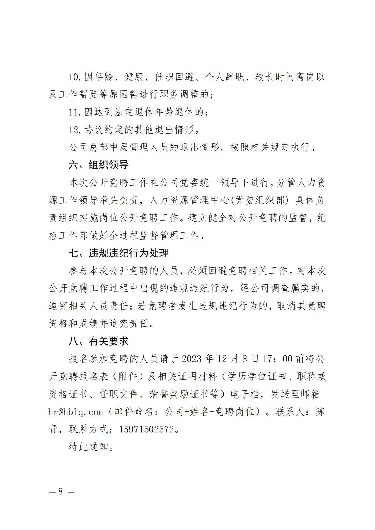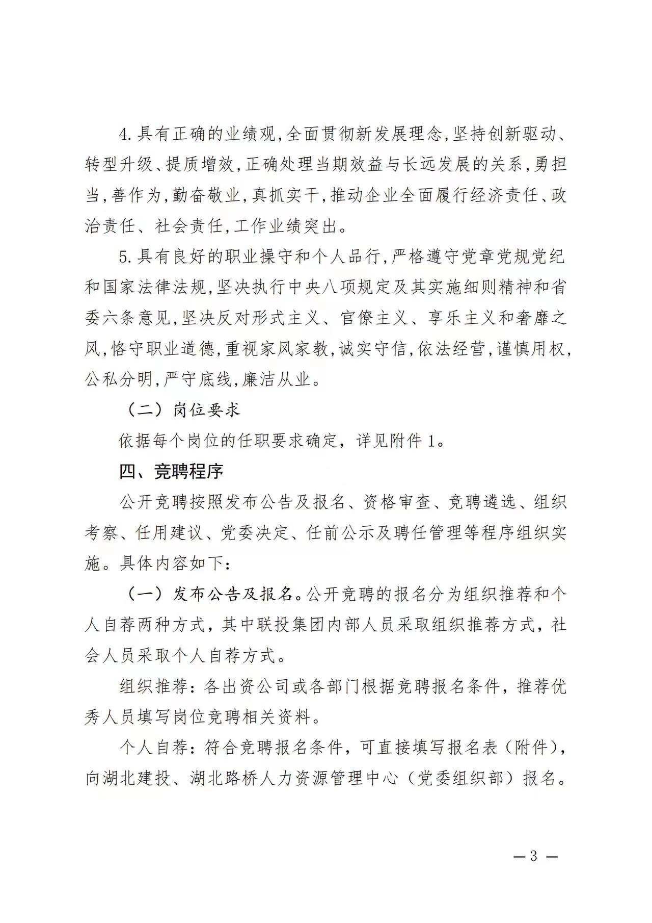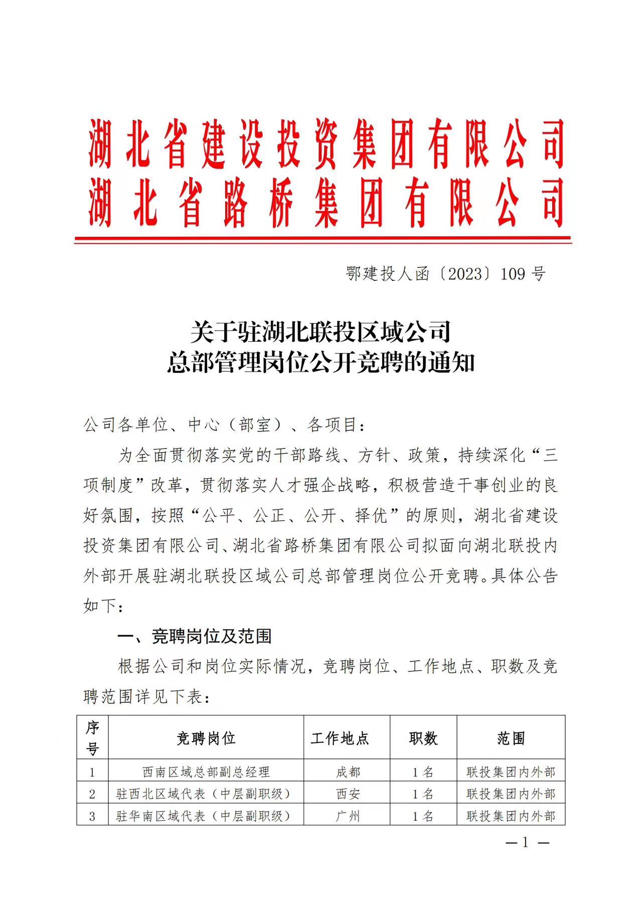 關于駐湖北聯投區域公司總部管理崗位公開競聘的通知