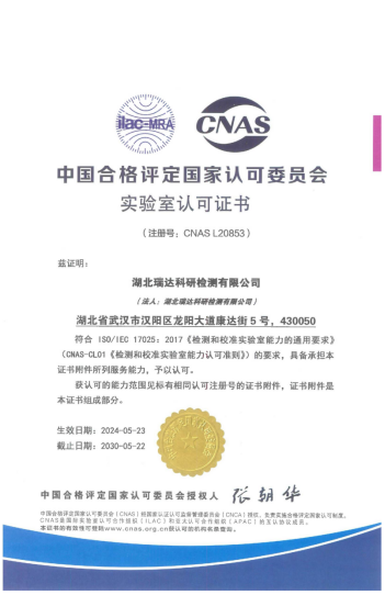 (圖:瑞達(dá)公司獲得國家實驗室認(rèn)可證書)