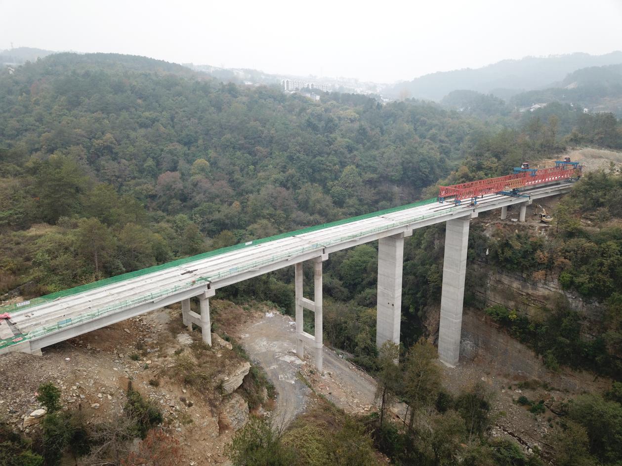 11月12日,隨著架橋機將最后一片T梁平穩落在庵溝2號大橋0#號橋臺上,標志著由湖北路橋承建的遠安縣磷礦專用路項目全線首座大橋T梁架設順利完成。